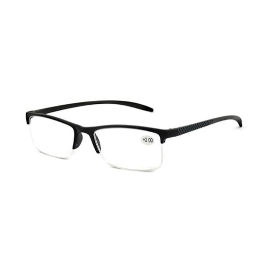 Bekijk alle detailsSportieve heren leesbril zonder onderrand in de kleur zwart. Deze kunststof leesbril heeft een stoere sportieve look. De veren zijn flexibel. Dus e...