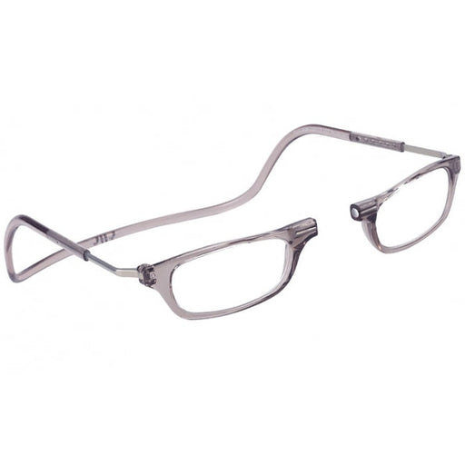 Een lichtgrijze CliC leesbril met magneetsluiting, iets donkerder dan de transparante CliC magneetbril. Klik de bril makkelijk aan elkaar met de m...